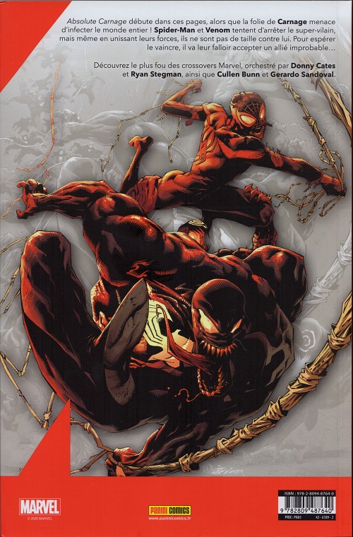 Absolute Carnage débute dans ces pages, alors que la folie de Carnage menace d’infecter le monde entier ! Spider-Man et Venom tentent d’arrêter le super-vilain, mais même en unissant leurs forces, ils ne sont pas de taille contre lui. Pour espérer le vaincre, il va leur falloir accepter un allié improbable…
