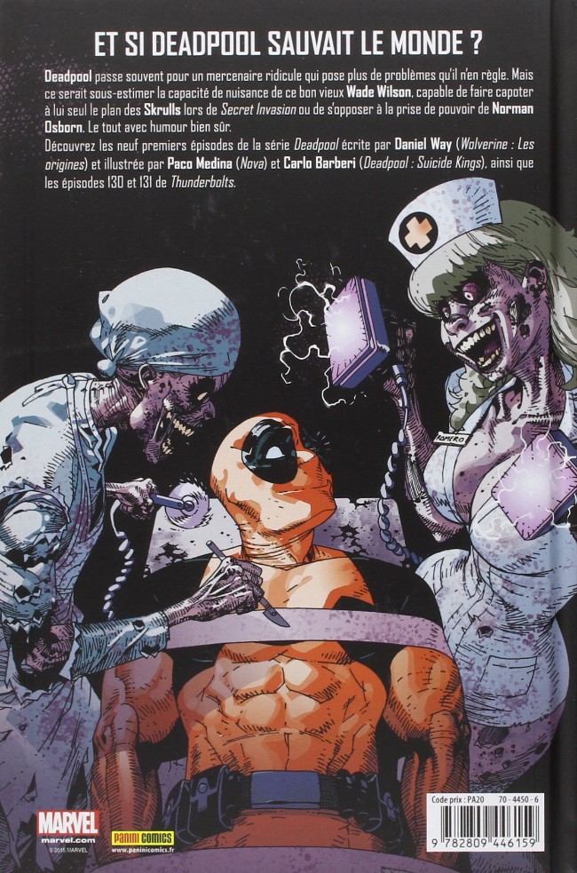 Découvrez les neuf premiers épisodes de la série Deadpool écrite par Daniel Way (Wolverine : Les origines) et illustrée par Paco Medina (Nova) et Carlo Barberi (Deadpool : Suicide Kings), ainsi que les épisodes 130 et 131 de Thunderbolts.