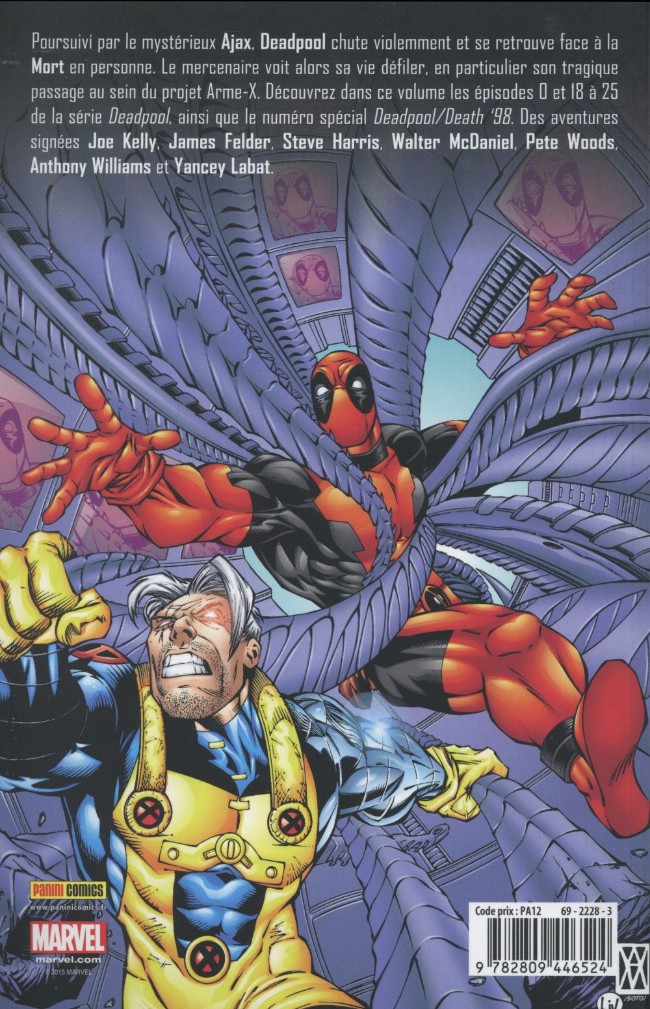 Poursuivi par le mystérieux Ajax, Deadpool chute violemment et se retrouve face à la Mort en personne. Le mercenaire voit alors sa vie défiler, en particulier son tragique passage au sein du projet Arme-X. Découvrez dans ce volume les épisodes 0 et 18 à 25 de la série Deadpool, ainsi que le numéro spécial Deadpool/Death ’98. Des aventures signées Joe Kelly, James Felder, Steve Harris, Walter Mc Daniel, Pete Woods, Anthony Williams et Yancey Labat.