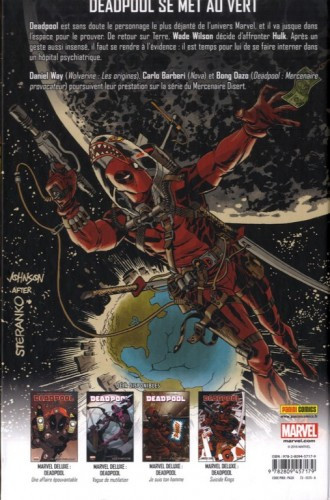 Deadpool est sans aucun doute le personnage le plus déjanté de l’univers Marvel. Il ira jusque dans l’espace pour le prouver ! De retour sur Terre, Wade Wilson décide d’affronter Hulk. Un geste qui conduit à une conclusion des plus logiques : il est temps pour lui de se faire interner dans un hôpital psychiatrique.