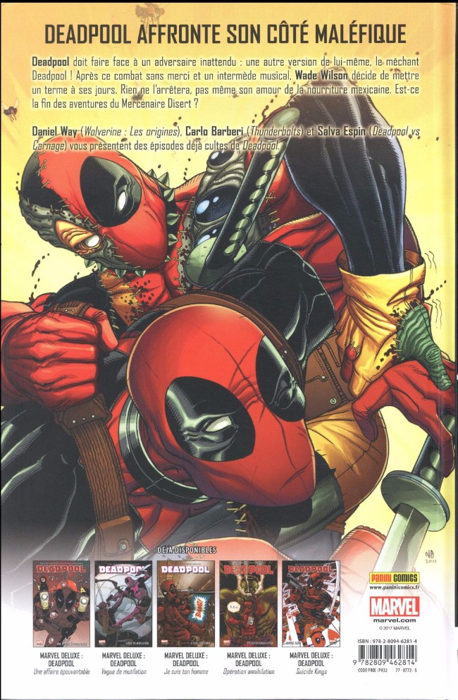 Daniel Way (Wolverine : Les Origines), Carlo Barberi (Thunderbolts) et Salva Espín (Deadpool vs Carnage) vous présentent des épisodes déjà cultes de Deadpool.