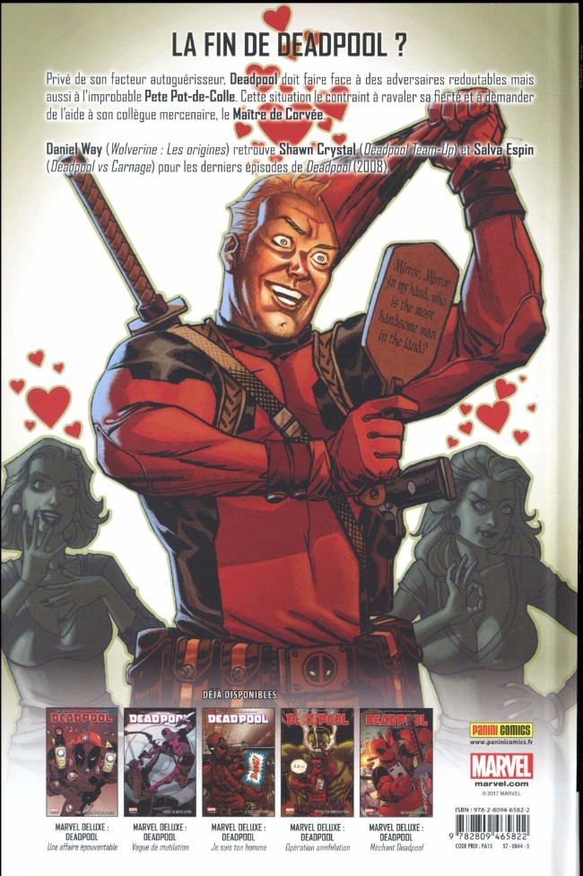 Daniel Way (Wolverine : Les Origines) retrouve Shawn Crystal (Deadpool Team-Up) et Salva Espin (Deadpool vs Carnage) pour les derniers épisodes de Deadpool (2008).