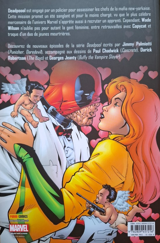 Deadpoool est engagé par un policier pour assassiner les chefs de la mafia new-yorkaise. Cette mission promet un été sanglant et pour le moins chargé, vu que le plus célèbre mercenaire de l’univers Marvel s’apprête aussi à recruter un apprenti. Cependant, Wade Wilson n’oublie pas pour autant la gent féminine, entre retrouvailles avec Copycat et traque d’un duo de jeunes meurtrières.