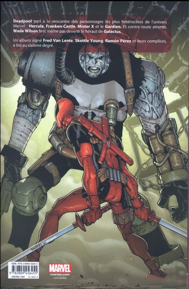 Deadpool part à la rencontre des personnages les plus hétéroclites de l’univers Marvel : Hercule, Franken-Castle, Mister X et le Gardien. Et contre toute attente, Wade Wilson finit même par devenir le héraut de Galactus.