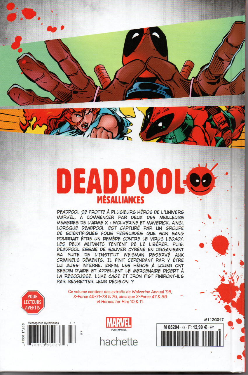 Deadpool se frotte à plusieurs héros de l’univers Marvel à commencer par deux des meilleurs membres de l’arme X : Wolverine et Maverick. Ainsi lorque Deadpool est capturé par un groupe de scientifiques fous persuadés que son sang pourrait être un remède contre le virus Legacy, les deux mutants tentent de le libérer. Puis, Deadpool essaie de sauver Cyrène en organisant sa fuite de l’Institut Weisman réservé aux criminels déments. Il finit cependant par y être lui aussi interné. Enfin, les héros à louer on besoin d’aide et appellent le Mercenaire Disert à la rescousse. Luke Cage et Iron Fist finiront par regretter leur décision ?