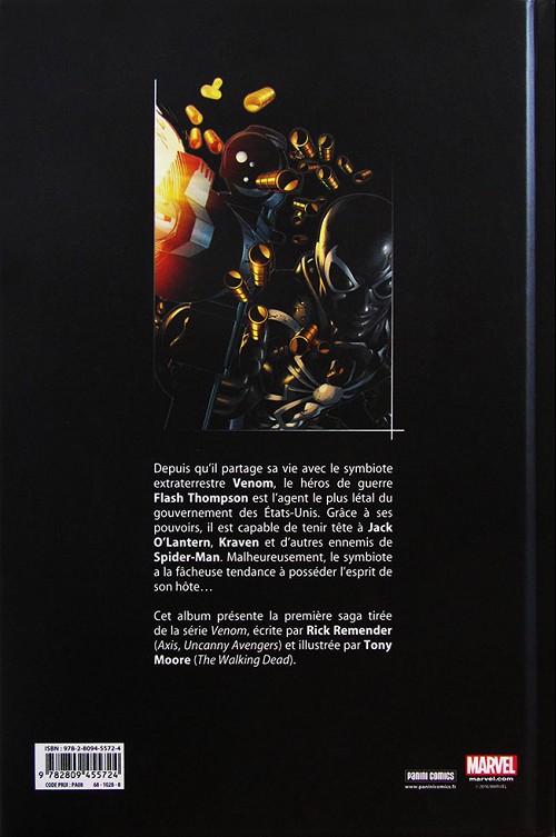Cet album présente la première saga tirée de la série Venom, écrite par Rick Remender (Axis, Uncanny Avengers) et illustrée par Tony Moore (The Walking Dead).