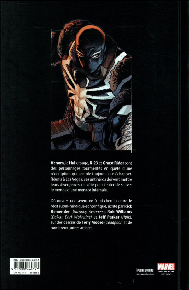 Venom, le Hulk rouge, X-23 et Ghost Rider sont des personnages tourmentés en quête d’une rédemption qui semble toujours leur échapper. Réunis à Las Vegas, ces antihéros doivent mettre leurs divergences de côté pour tenter de sauver le monde d’une menace infernale.